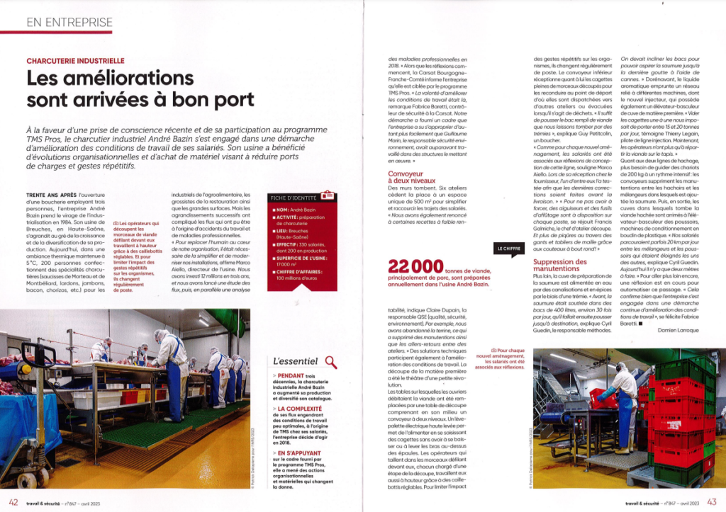 Une belle mise en avant dans la revue Travail et Sécurité Retrouvez-nous dans la revue Travail et Sécurité du mois d’avril 2023 ! Une belle mise en avant de notre travail réalisé sur le process du jambon. Bonne lecture ! Revue Travail et Sécurité double-page-inrs.pdf